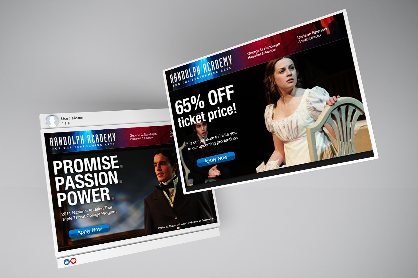The Randolph College for the Performing Arts was a Toronto theatre school for singing, dancing, and acting. Its newsletters targeted the admissions process, from inquiry to audition to enrolment.