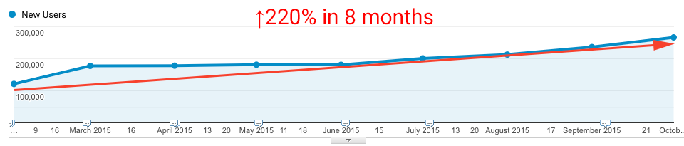 After eight months, settlement.org overpassed the founder traffic requirements by three times. Also, the top articles started to reflect the people's interests indicated in surveys. The organic and general traffic became steady during weekdays. In the end, organic traffic was 90% of the total traffic, helping people find our content on the Internet.